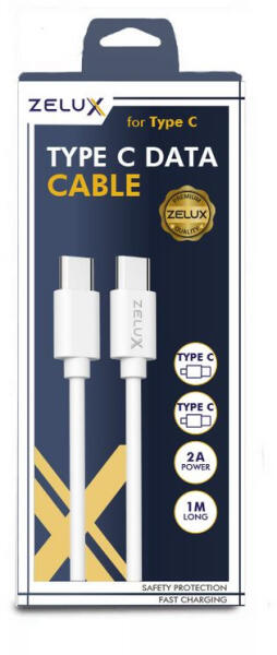 Zelux gyorstöltő 3A/60W és adatkábel 100cm typeC-C fehér